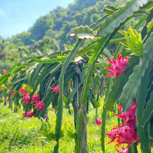 Dragon fruit with red flesh is a premium fruit that is nutrient-rich. The dragon fruit produces a very deep and delectable sweetness when the stalks are mature. In addition to being a unique fruit for eating, dragon fruit is also used for cooking, baking, and other particular purposes.